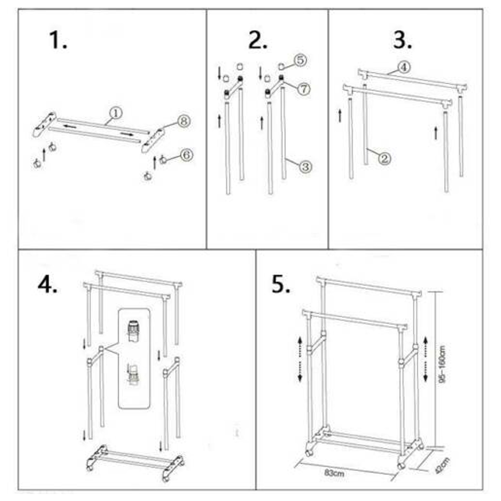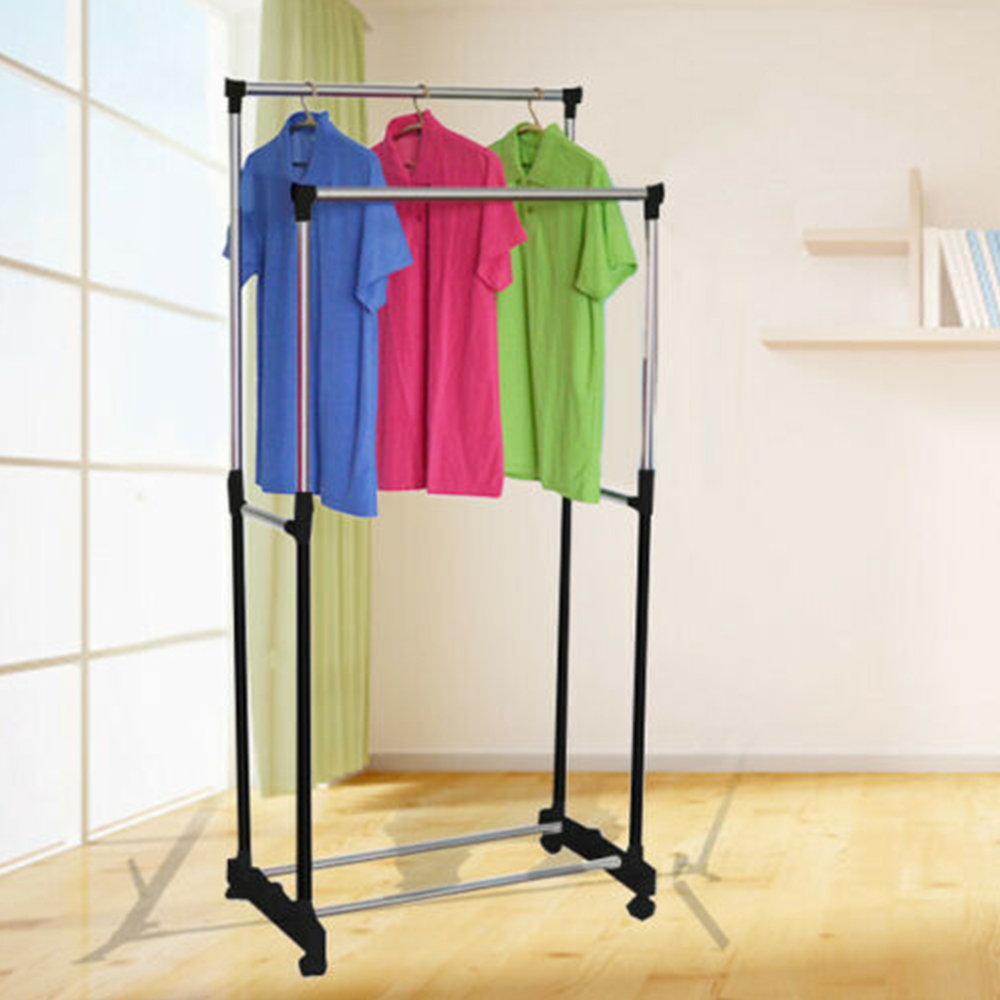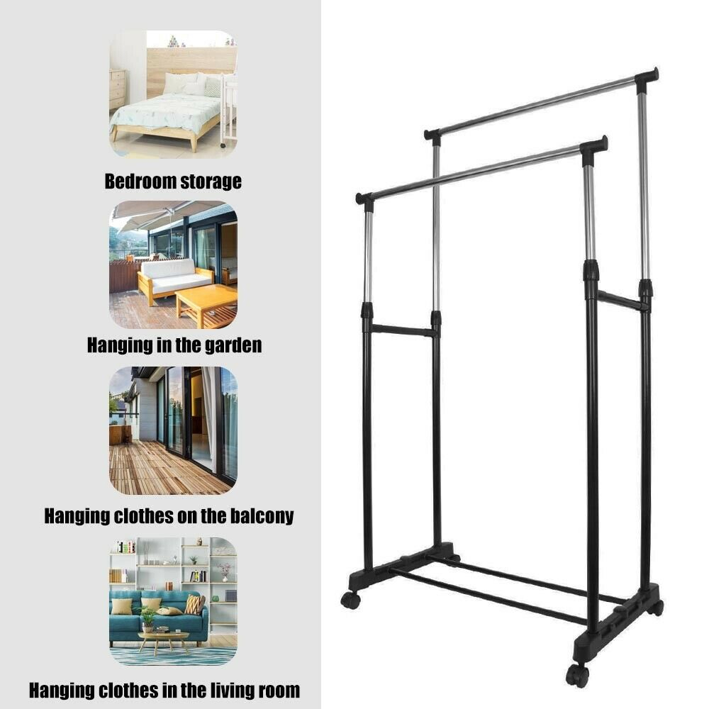 شحن مجانىاستاند ملابس زوجي – قابل للتعديل من 95 ل 160 سم – و عرض من 88 ل 158 سم – و عمق 40سم وزن تقيل – و مواسير استانلس قوية – عالي الجودة