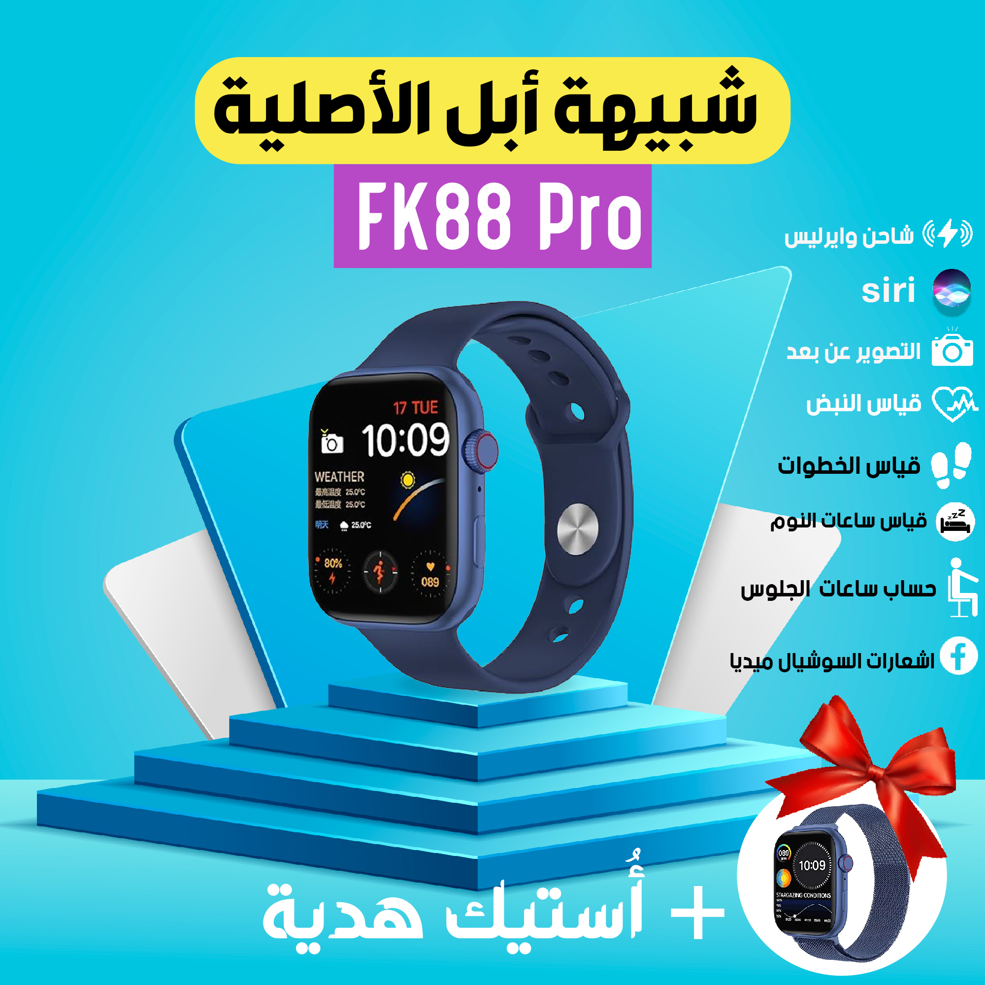 شحن مجانىعايز ساعة امكانياتها عالية جداً وشيك؟ يبقى مفيش غير شبيهة أبل الأصلية، مش حتقدر تفرق بينها وبين ساعة أبل series 6 original في الشكل، ومن أفضل الساعات الكوبي الموجودة في السوق من حيث الإمكانيات.